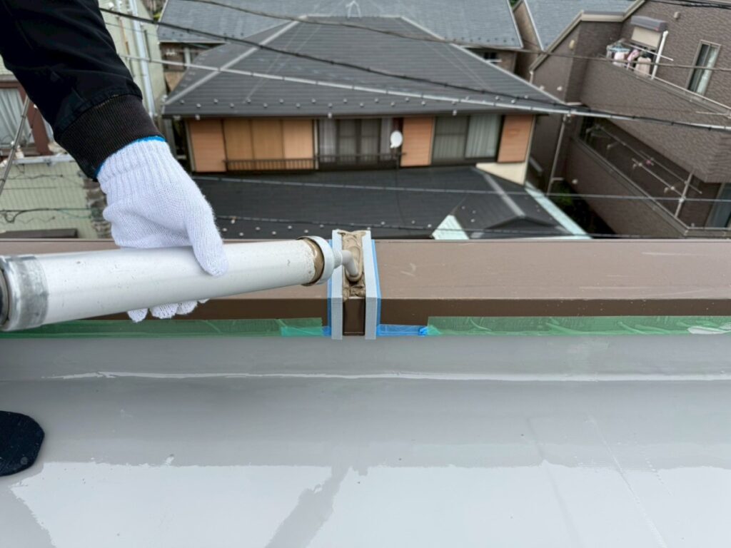 ウレタン墨田区オフィスビル屋上防水工事 X-2工法 笠木の処理から防水層の完成まで