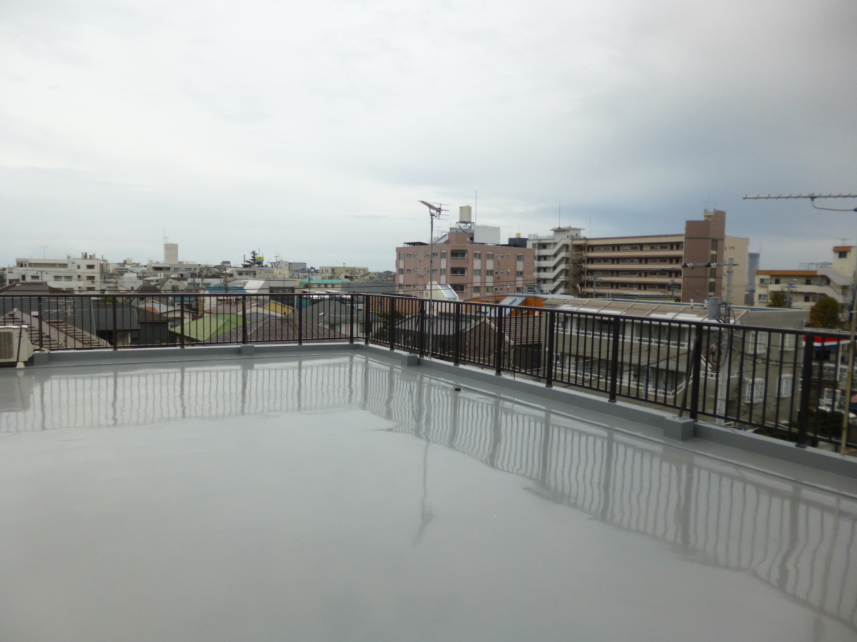 こうした部分を丁寧に補強し、プライマーで密着を確保し、ウレタンを2層しっかり流すことで、屋上の防水性能は再び蘇ります。