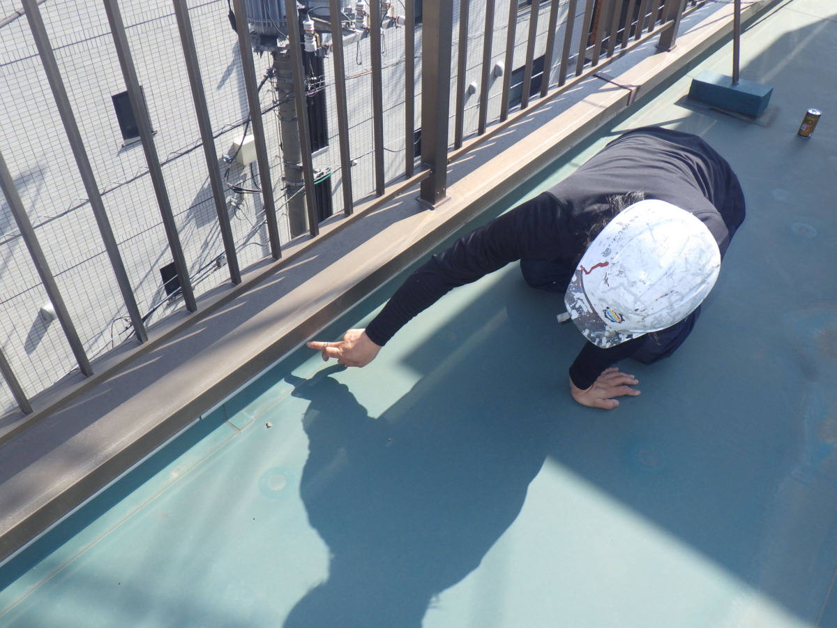 あわせて笠木全周をチェックし、雨水の侵入口となり得る箇所が残っていないことを確認しています。