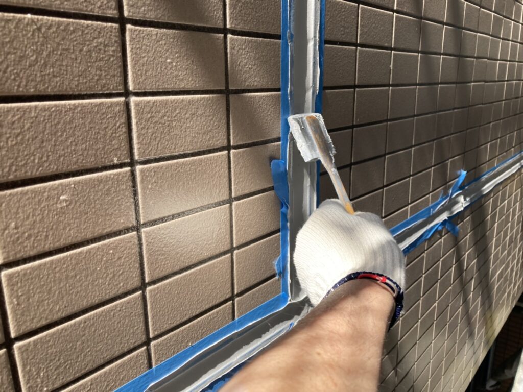 旧シールを撤去したのちプライマーをたっぶり塗布していきます。