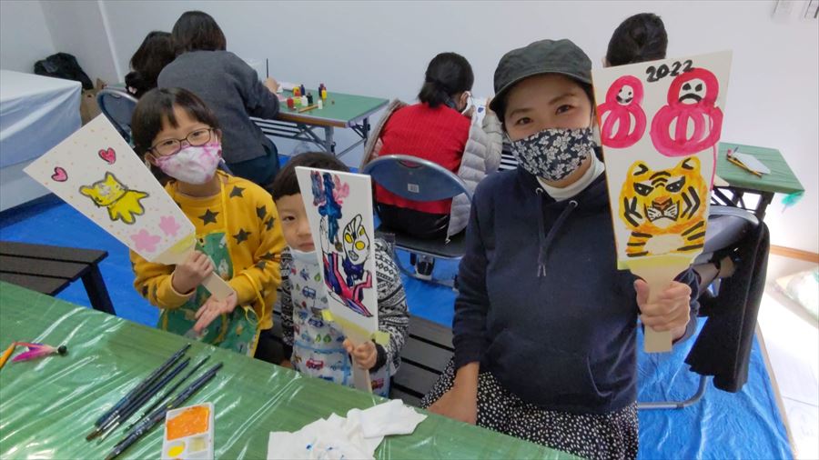 参加者の中で一番早く描き終えた、まだ園児の女の子が描いた和風のイメージこの羽子板。
