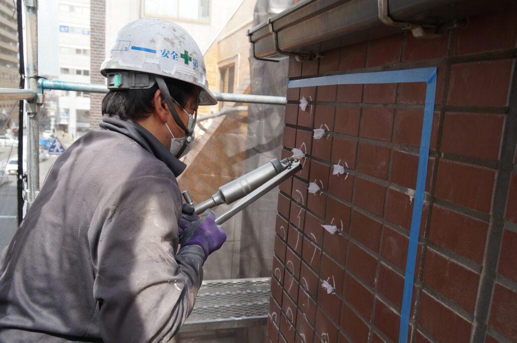 5階建てビルの外壁タイル滑落防止、打音調査と補強&張り替え