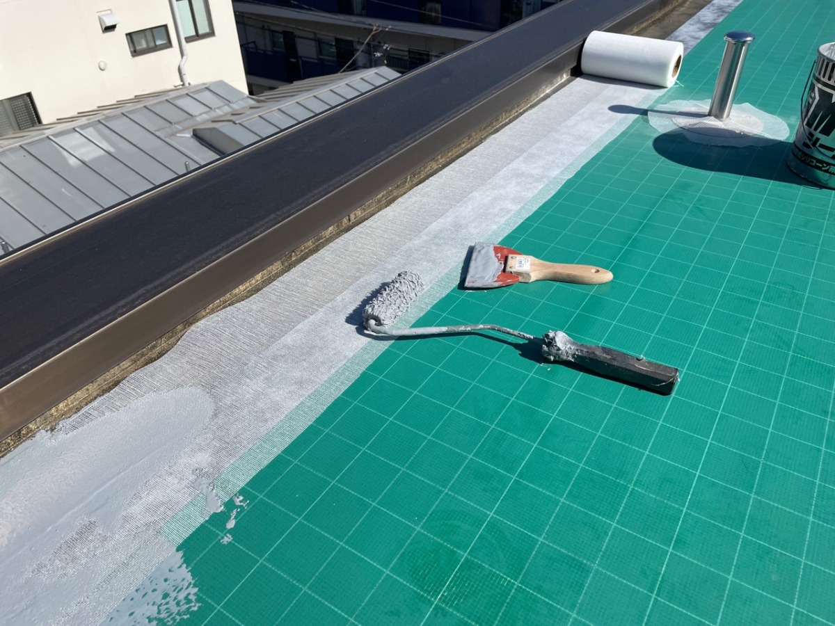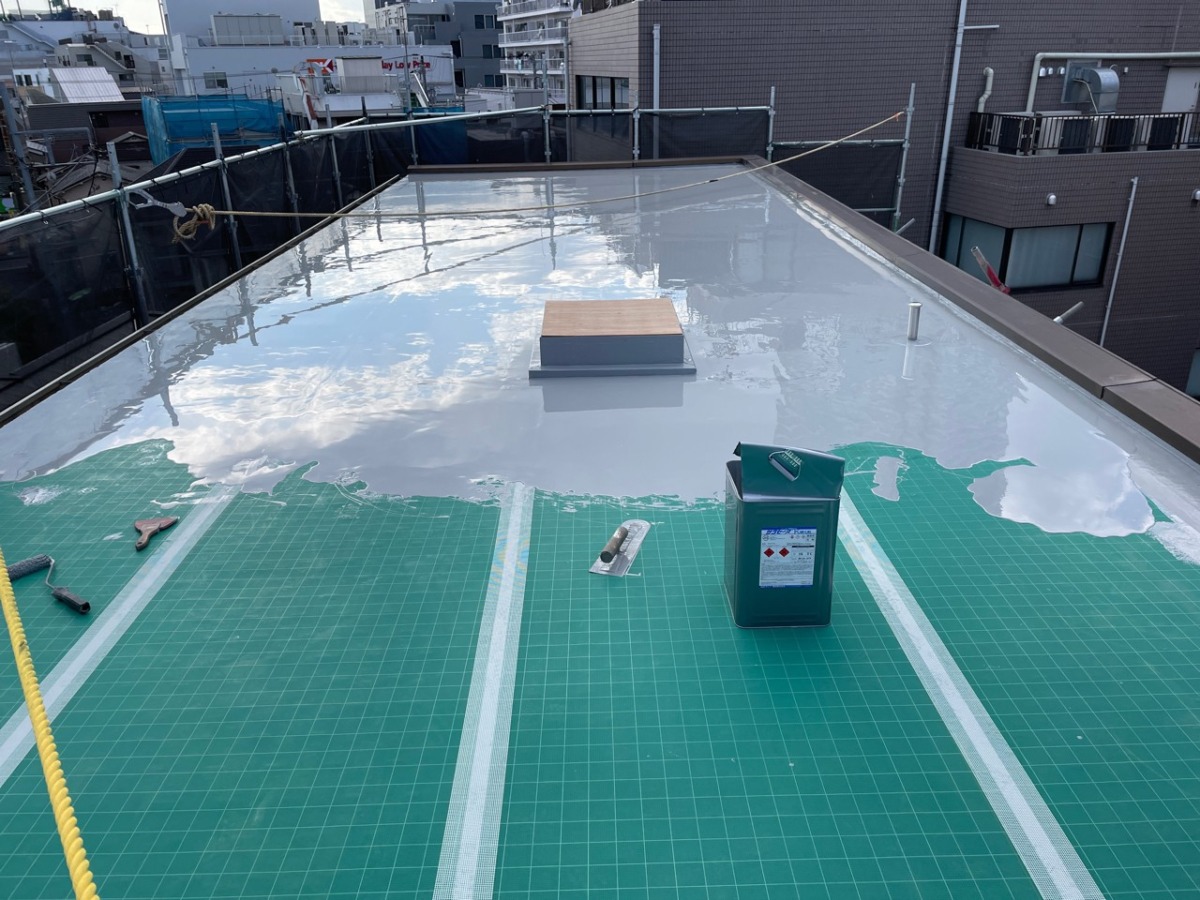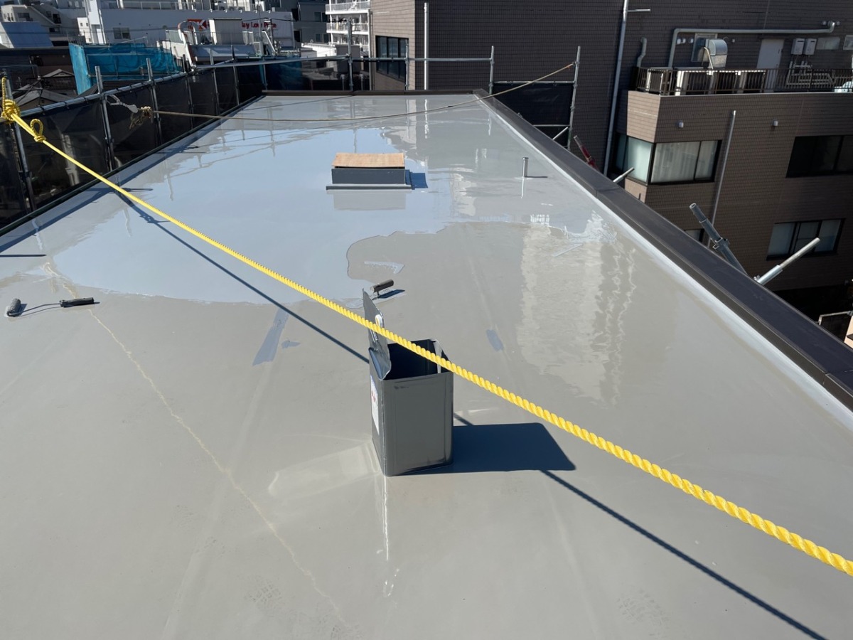 最後に、ウレタン防水層を紫外線から守るためトップコートを塗布します。