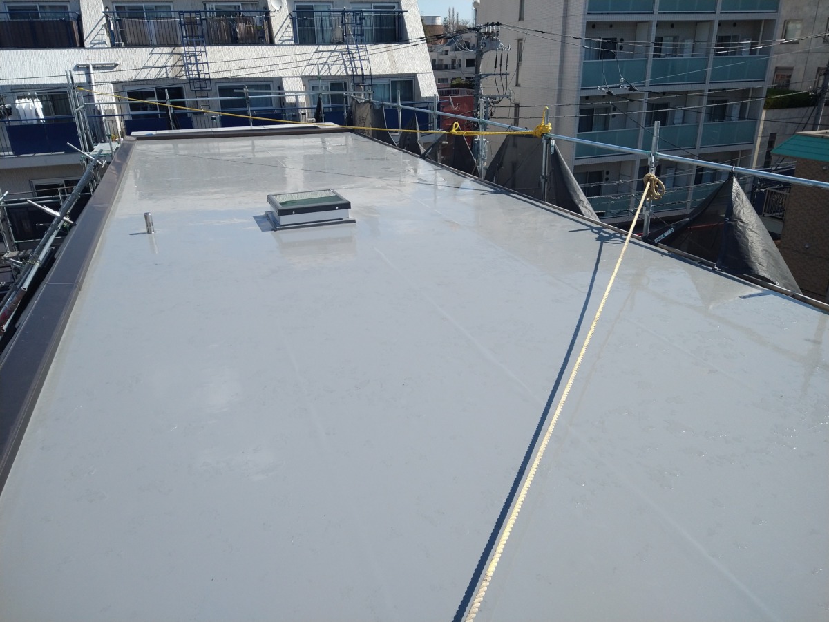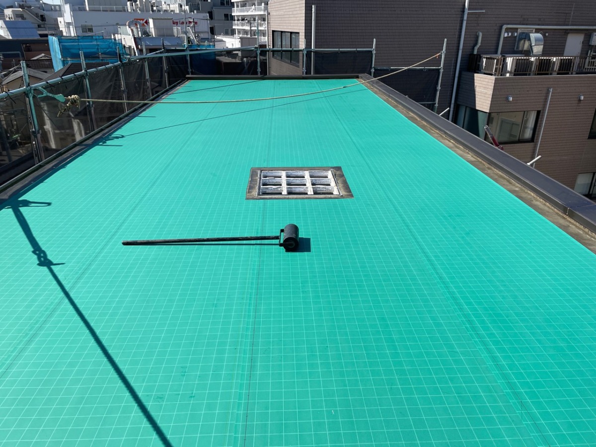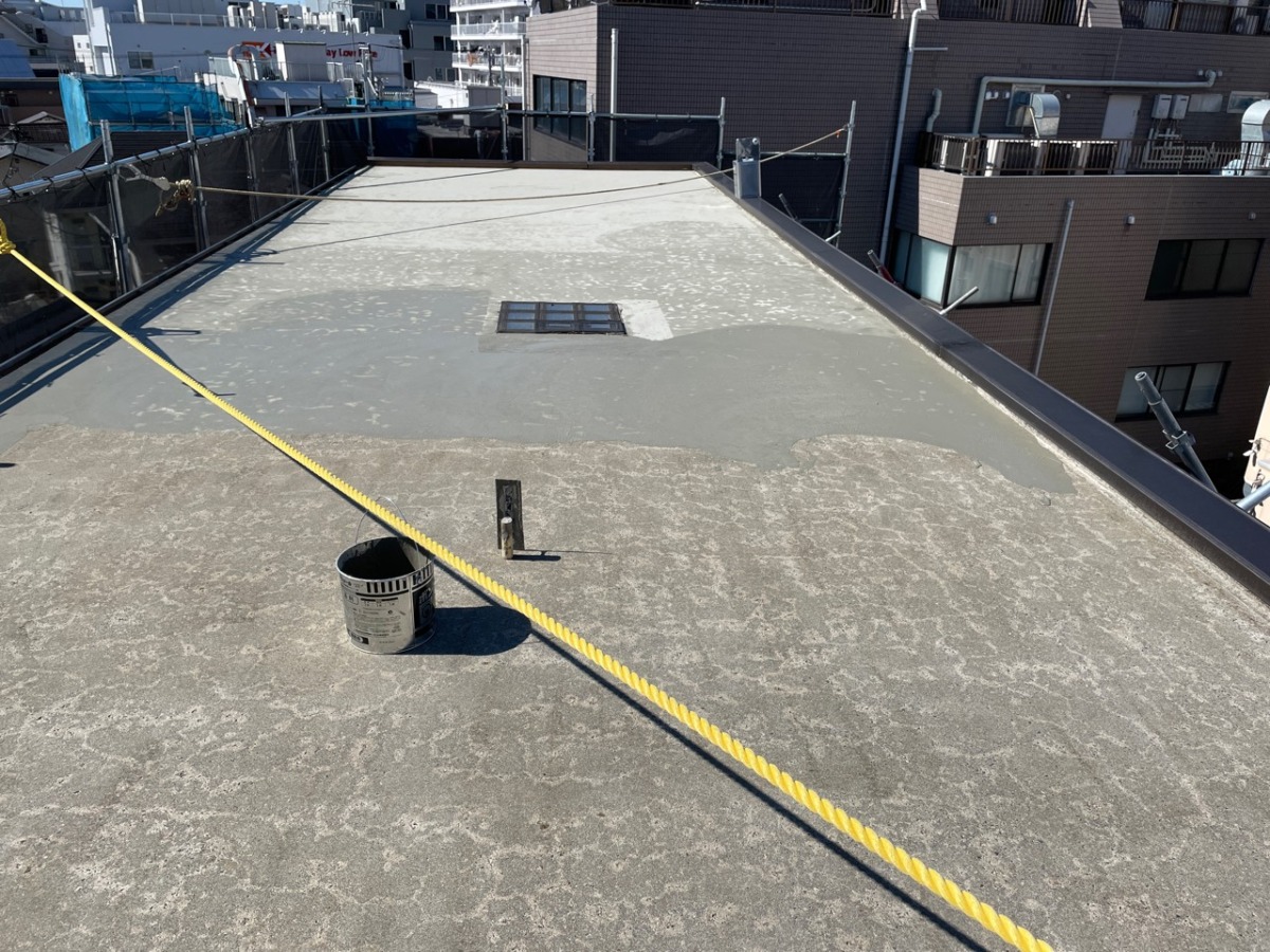 最後に、ウレタン防水層を紫外線から守るためトップコートを塗布します。