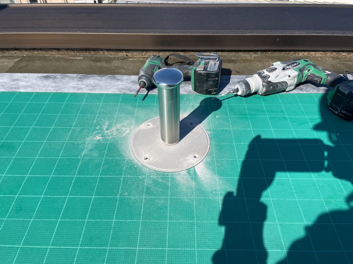 脱気筒まわりや端部といった動きが出やすい箇所には、ガラスクロスを貼って補強しました。