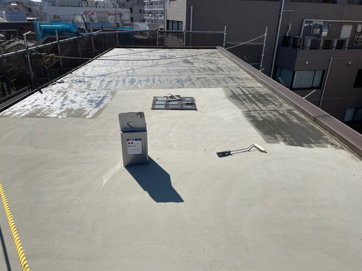 下地と防水材の密着を強めるため、ウレタン系プライマーを均一に塗布しました。