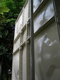 屋上の貯水タンクとともに、1階にある受水槽のタンクも紫外線をカットして藻の発生を押さえる塗料のサンカットを塗装しました。