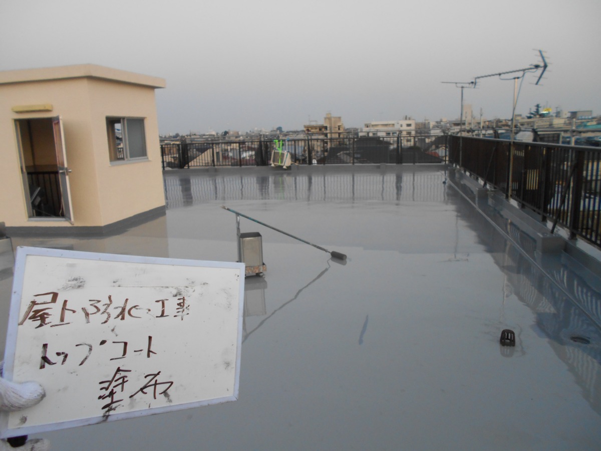 トップコート施工後の屋上は、ムラのない美しい仕上がりとなりました。