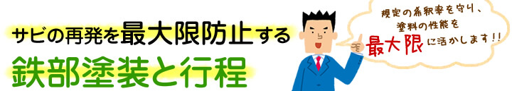 サビがなく塗膜が活きている場所については、中塗りをせずにを上塗りを厚めに塗装し、さびが発生している鉄は塗料が吸収するため、その分中塗りをさらに多めに重ね塗りするなどによって、鉄部全体の耐久性が伸びます。